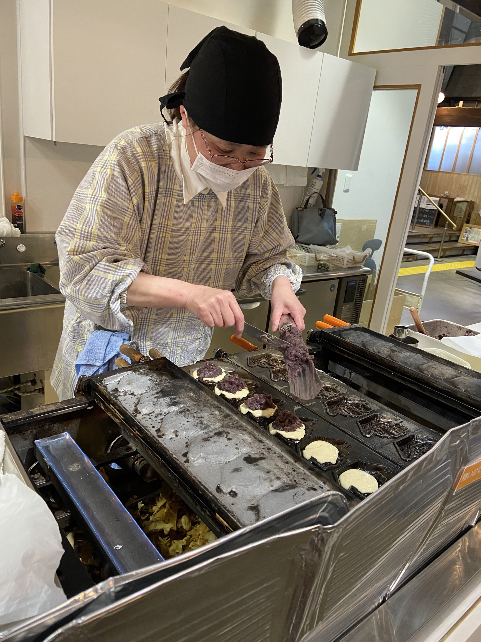 萩市民には身近なお菓子、「蒸気船まんじゅう」は、まんじゅうという名前ではありますが、蒸気船をかたどった金型で焼く焼き菓子です。生地はたいやきや大判焼きに似ていて、蒸気船の部分にあんこがたっぷり詰まっており、萩市民の老若男女に愛されているもの。発祥は幕末の頃という説、日露戦争の頃という説、お店によって様々ですが、外国の船を見て「蒸気船を焼いて食ってしまえ!」と開発されたものという説は共通しています。