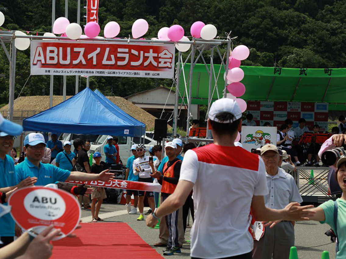 -この度、阿武町において3度目のスイムラン大会(ABUスイムラン道の駅フェスタ)が開催されます。阿武町が、県内でも山と海に恵まれた環境であることは住民の皆さんも重々承知されていました。この素晴らしさをどうかして全国に発信したいという花田阿武町長と町民の皆さんの思いと、県内でトライアスロン大会を開催したいというトライアスロン愛好者の思いが一致し、平成30年にこの大会が始まりました。