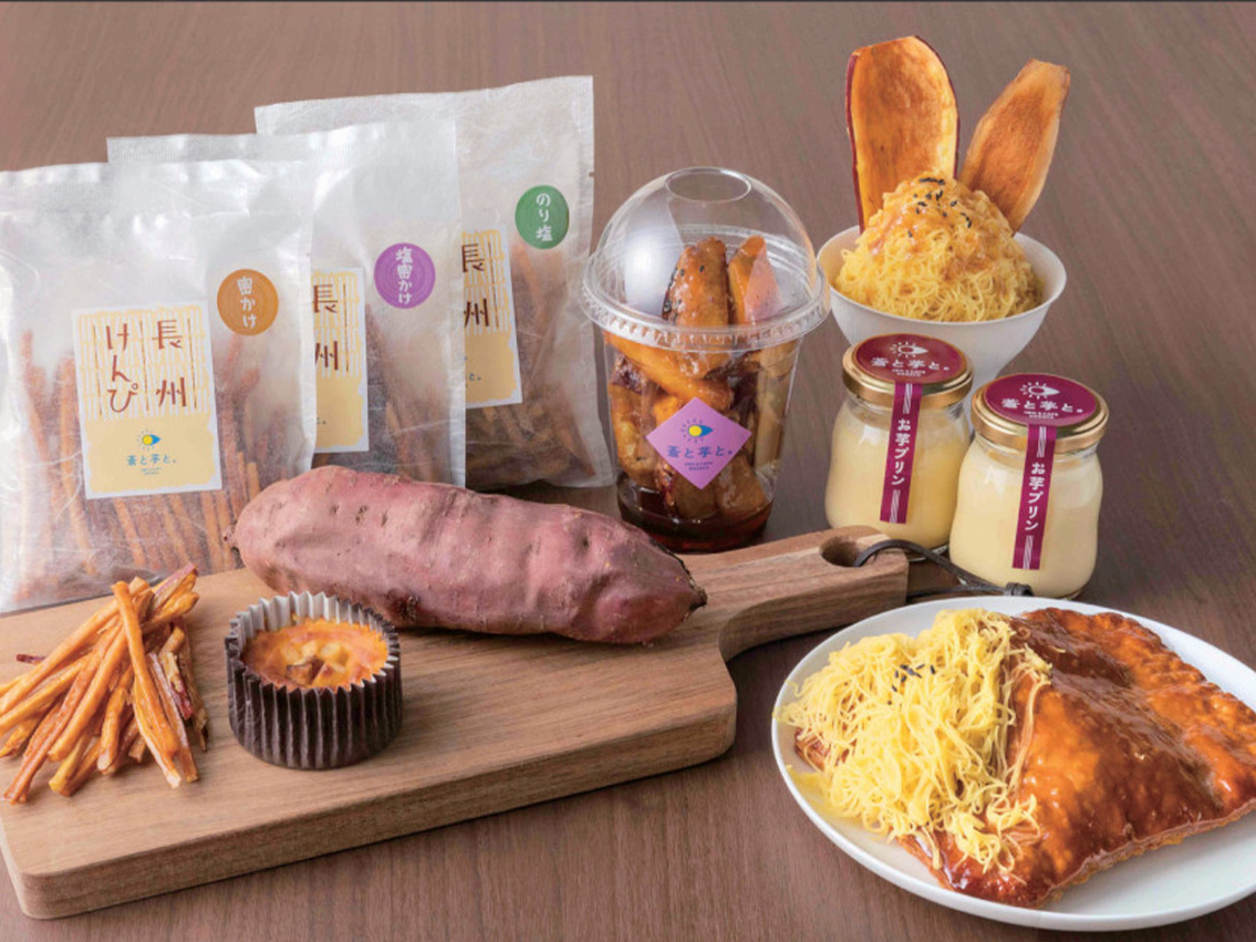 長門を包み込む広大な海の「蒼」と、自然の恵みをたっぷりと受ける「芋」に感謝し、この地域資産を受け継ぎ広めていきたいという思いから店名を「蒼と芋と。」とし、さつまいもが持つ美味しさを大切に、焼き芋など昔からある素朴な食べ方はもとより、新食感を楽しめる商品も開発し、地元の方だけでなく、全国へ向けて提供されてます。