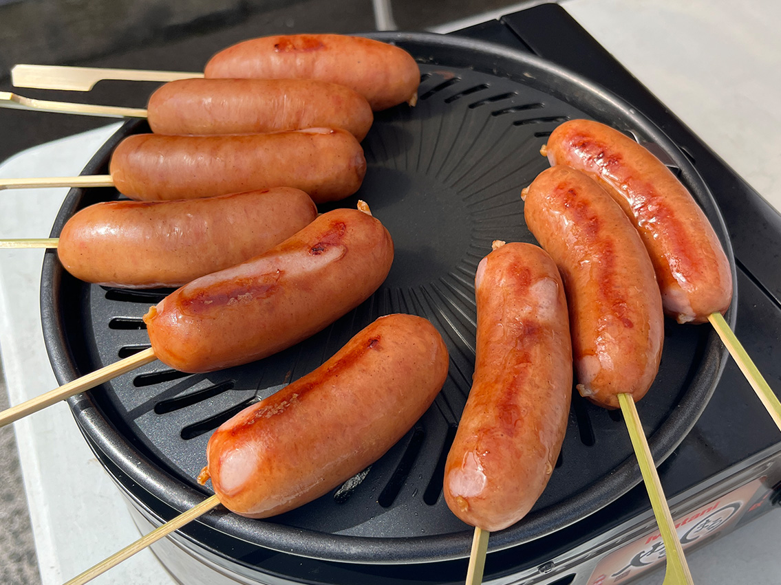 さて、穢れを知らない豚たちまでダークサイドに引きずり込んではいかんので定期的に農場を脱出し今年はどんどんイベントに出店していこう。昨年は忙しさと人手不足もあって出店は最小限。イベント出店と言えば萩むつみ豚まんでしたが今年から「萩むつみ豚ソーセージ」も販売中。こちらイベント時だけの販売ですよ。焼きたてを是非食べて欲しい。6/2㈰「須佐男命いか横丁」(※予定です)でお待ちしております。ワタクシ一人での出店となりますので豚まん蒸し蒸し、ソーセージ焼き焼き、電卓ポチポチする姿をご覧ください。