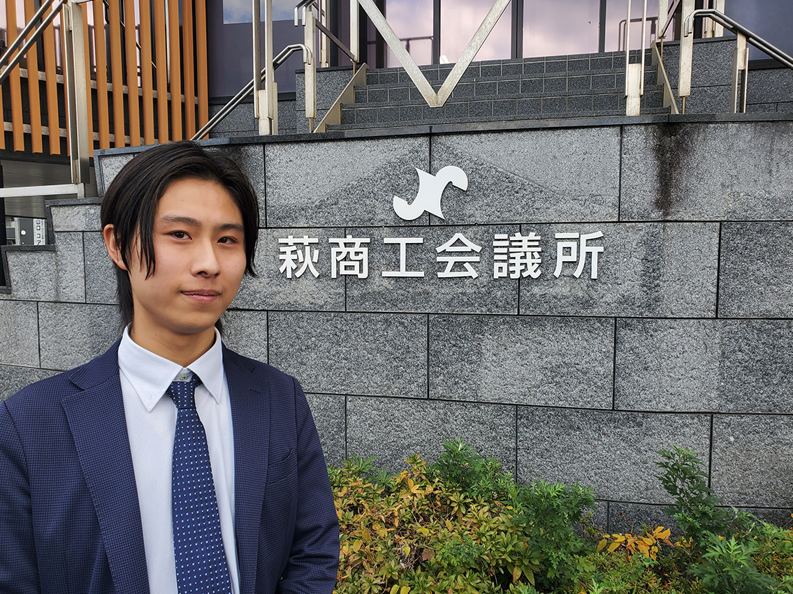 -社会人4年目となり、私がここまで頑張ってこられたのは、家族の支えと恵まれた環境のお陰です。小学生の時にはピアノと空手を習い、中学ではおしくらごうや相撲大会に積極的に参加していました。また、お神輿や餅つきなどの町内行事にも参加するのが好きでした。常に家族は私のやりたいことや夢を応援してくれ、受験や就職など厳しい時期でも温かい言葉で支えてくれました。また、高校時には平成30年7月豪雨による広島県呉市の土砂災害が発生し、両親から災害ボランティアに行ってみてはどうかと勧められたため、参加しました。そこで自然の猛威を感じつつ、人が地域で生きていくという営みは、多くの人で支え合っているからこそ可能だということを感じることができました。そのような恵まれた環境で育ち、多様な人々と出会い、多くの貴重な経験を積むことができたことで、将来は地元のため地域のために働きたいと思うようになり、高校卒業後は公務員専門学校に進学しました。専門学校での生活を1年過ごした頃、萩商工会議所職員の募集を目にし、これだと思い応募し、採用していただくことになりました。