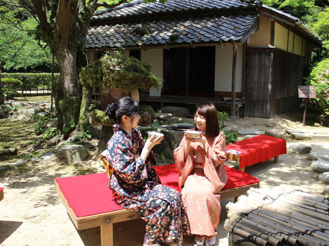 「萩・大茶会」では、萩焼とともに古くから親しまれている”茶の湯文化”に触れることができます。市内の流派が、緑美しい指月公園を中心にお茶席を設けます。青葉が薫る毛利の居城 萩城跡などを舞台に、お抹茶の接待が行われます。